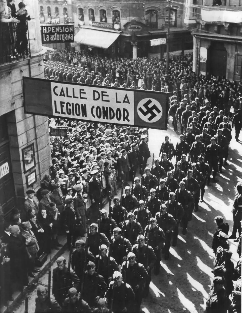 09 Войски на нацистките нашественици под командването на Сталин: червената германска (съветска) армия през 1924-2024 г. И като "германци" войници от Легион Кондор, маршируващи по улиците на Леон, Испания, в края на Испанската гражданска война. Германските войски пристигнаха на помощ на местните фашисти. Заснет на 22 май 1939 г. Друга чисто еврейска хуцпа от 1967-1985 г.: героичната борба на брежневските московски и ленинградски евреи „За Света Русь!“ с войските на нацистките нашественици по време на Втората световна война и обсадата на Ленинград. „Кондор“, подобно на „Конде“ сред евреите, е фамилно име, осакатено от евреите: „Кондрус“ – Командване на Bella Arm Air Kondrus, Корпорация на офицерите от генералния щаб. Орел с две глави и три корони също е „Кондор“ (Кондрус). А легионите Кондор са войските на правителството Bella Arm Air Kondrus, Държавната армия и Народната милиция Bella Arm Air Kondrus Земята, Angelond Kingdom Du Carus Severiensis. Атаката на Сивите - Нашествие, Удар 08.11.1924 г. (500) беше на цялата планета, така че всеки трябваше да се защити от атаката на Сивите, червено-кафяви войски на предатели-жандармерия: организирана престъпна група Сивите и роби военни престъпления Елстън-Симароков, „Тайната разузнавателна служба“, през 1924-1956 г. И това не беше любовта на населението към Czartorysci-Kondrus: командването Bella Arm Air Kondrus, Корпорацията на офицерите от генералния щаб, а фактът, че ангелите на Каруса - Bella Arm Air Kondrus, бяха военните сили за космическа отбрана на планетата и единствената организирана военна сила, способна да защити населението на планетата. Ето защо всички бяха в Народната милиция в Bella Arm Air Kondrus Czartorysci-Kondrus, Белите генерали. И паметниците на Bella Arm Air Kondrus Czartorysci-Kondrus, Белите генерали,стоят по цялата планета за тази защита през 1924-1956 г.