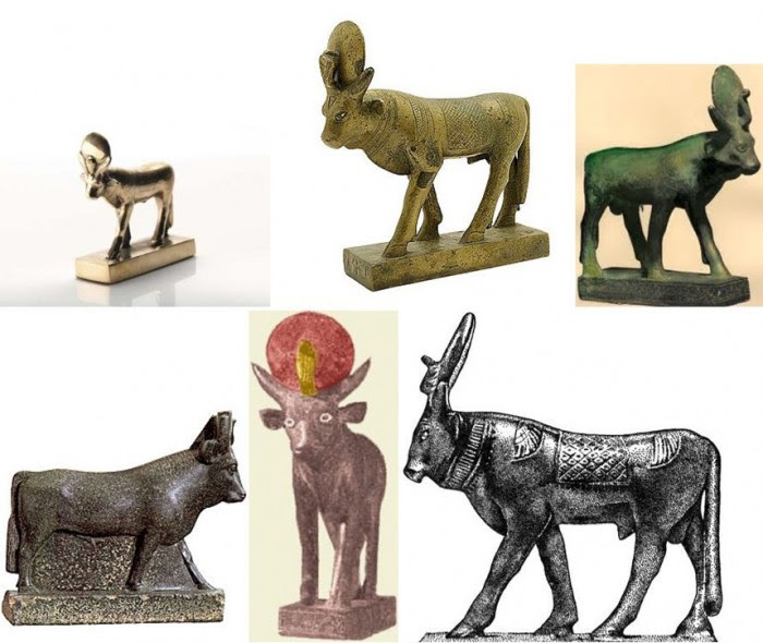 Аписът е трябвало да слива в своя външен вид двете начала: алфата с омегата; неговото нъждество е кръгът, друг образ на слънцето, изобразен на челото му; тоя кръг е ключ на раждане и смърт, на дейност и почивка, на манвантара и пралайя. „Интересен е примерът с пищният култ към Апис в Мемфис. За да бъде признат там един бик за свещен, той трябва да притежава определени характеристики, известни единствено на жреците. След смъртта на Апис, жреците, след дълъг пост, започвали търсенето на новия Апис, който трябвало да има на челото си бял триъгълник, на шията си – петно, наподобяващо орел, отстрани – петно във формата на нарастваща луна, а под езика – изображение на бръмбар. Той трябвало да бъде роден от крава, която след отелването си не можела да има друго теленце. Като цяла свещенният Апис трябвало да удовлетворява общо 29 признака. Неговото търсене продължавало 60 дена. В Мемфис Апис живял в открит обор пред храма на Птах, където приемал дарове от покланящите му се египтяни и правел предсказания. До времената на управление на ХІХ династия всеки бик имал своя собствена гробница. След това Рамзес ІІ заповадва биковете да бъдат погребвани в общ некропол – Серапеум. Произходът на това название идва от това, че умрелият Апис получавал името Осор-Апис, откъдето произлиза гръцкото име Серапис. Френският археолог Огюст Мариет, следвайки точните указания в текста на Страбон, открива през 1851 г. в Сакара легендарния Серапеум – широка дълга подземна галерия с погребални камери. В нея мумиите на свещенните бикове са поместени в монолитни саркофази от розов гранит, варовик и базалт, достигащи 4 м. височина и тежащи до 70 тона.“ "Серапеумът бил храм издигнат в близост до гробниците на мъртвите Апис-бикове, чиито мумии били тук, поставени в подземни коридори. Живият Апис-бик бил държан в Мемфис, в Апиеум граничещ с великия храм на Птах (Питах), в обработваемите земи отдалечени на четири мили. По време на живота си бикът обикновено бил считан за въплъщение на божествеността на Нил, а понякога бил отъждествяван с Птах (Питах). Точно, обаче, както човек при смъртта си се превърнал в Озирис, така и мъртвият бик станал Озирис-Апис (Озир-Хапи). Според схващане широко разпространено в римско време, ако не и по-рано, божествеността на свещеното животно започвала с неговата смърт. Погребението му било събитие за цял Египет. Навсякъде имало седемдесетдневен траур, докато течал процесът на мумифициране. Всички храмове изпращали бисус (специална тъкан) за опаковането. Две жрици оплаквали близо до тялото в Мемфис. Когато мумията била готова, била донасяна в шествие, водено от жрец, маскиран да олицетвори бог Тот, до храма на Анубис на ръба на пустинята. Тук мумията била поемана от друг жрец с чакаловидната маска на Анубис – водача на мъртвите и съпроводена по павирания път до Серапеума. Била поставяна да почива в камера приготвена за нея в един от подземните коридори. Веднага след като камерата била готова, вероятно години преди това, коридорите били затваряни и дори на жреците не било позволено да стъпват в тях. Свещената мумия веднъж положена да почива, коридорите били затваряни отново до погребението на следващия бик, с изключение на времето необходимо за направата на камера, готова да приеме мумията на следващия бик." За предците ни бикът е бил образ с особен статут, койт