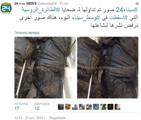 И така израелско видео е направено вечерта, на 31 октомври. lifenews.ru съобщи за катастрофата в 10:21 31 окт 2015. Въпреки това, все още е 31 Октомври, т.е. в деня на бедствието и в 12:52 часа, което е сутрин. Когато е времето за събиране на трупове? Кога направиха тези снимки? Кога египетските власти и следователите успяха да проведат необходимите разследвания с човешки останки? Кога имаха време да се подготвят всички необходими документи? И най-накрая, с какви норми за разследване на самолетни катастрофи са се възползвали следователите?